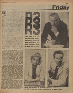 Fig. 3: Snippet of the Radio Times, announcing R3 with the teasing advert of: “The start of a new thirteenpart series concerned primarily with scientists and their problems – both at work and at home.”